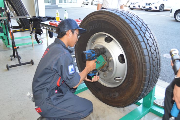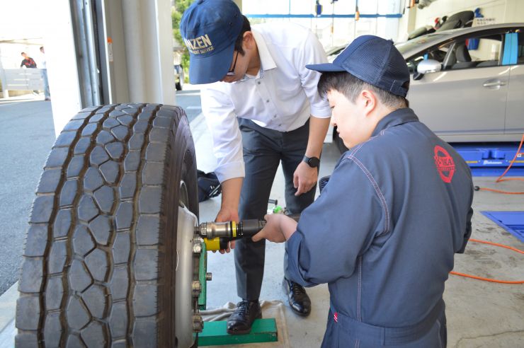 大型車用の電動パワートルクセッターやインパクトレンチ、トルクレンチを使い、締め付け作業なども体験させていただきました。ワークサポートスーツの体験も面白かったです。